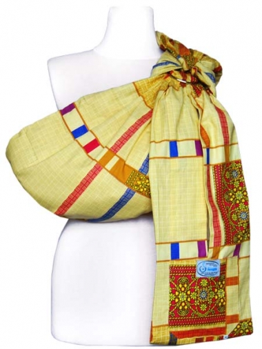 В данной модели конец полотна слинга зашит и образует внутренний карман. Снаружи имеется ещё один нашивной карман. Внешняя ткань - бязь, внутренняя ткань - однотонный ситец или бязь. Слинги из бязи самые универсальные. В таком слинге Вам будет хорошо и уютно дома, когда Вы убаюкиваете малыша или занимаетесь своими делами. Для улицы - одевайте ребенка соответственно погоде. Хлопок очень хорошо драпируется, почти не мнется, легко регулируется в колечках. Ткань достаточно плотная, чтобы выдержать даже пятилетнего ребенка.