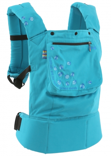 Эргономичный рюкзачок I love mum, модель Классик яркого бирюзового цвета с вышивкой "божьи коровки" будет отличным помощником для родителей в ношении ребенка.
