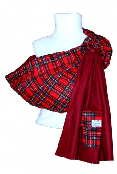 В данной модели конец полотна слингазашит и образует внутренний карман. Снаружи имеется ещё один нашивной карман.Внешняя ткань - поликоттон с содержанием хлопка 50%, внутренняя ткань - однотонный ситец. Ткань достаточно плотная, чтобы выдержать даже пятилетнего ребенка. Больше подходит для улицы.