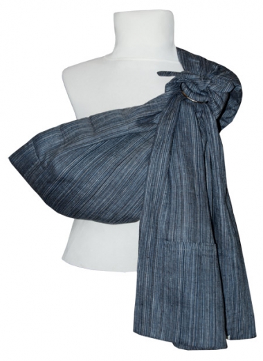 арт. Л М3-2.1200 Слинг с кольцами лен полоски темно-синие, двухслойный с тремя нашивными карманами