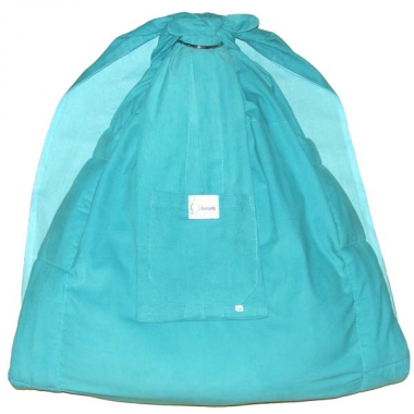 В данной модели конец полотна слинга зашит и образует внутренний карман. Снаружи имеется ещё один нашивной карман. Внешняя ткань - микровельвет (100% хлопок). Внутренняя ткань - однотонный ситец. Такой слинг хорошо иметь как второй слинг для улицы, он больше подходит для ношения в холодное время года или в прохладную погоду или в холодной квартире.