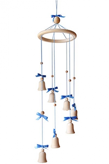 Очень приятный и нежный звук, когда деревянные колокольчики ударяются один о другой, а малыш при этом будет учиться находить по звуку и фокусировать на них взгляд.