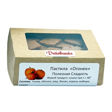 • Идеально подходит для детей, беременных, кормящих мам, а также для всех, заботящихся о своем здоровье. Пастила Диковинка "Огонек" - полностью натуральный продукт, полезная сладость, заменяющая другие десерты.