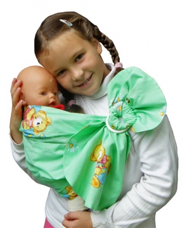 Это слинг для Ваших старших детей, которые так любят подражать мамам. Подросший ребенок, которого носили в слинге, с огромным удовольствием положит в такой игрушечный слинг свою любимую куклу или зверюшку и будет носить дома или на прогулке.