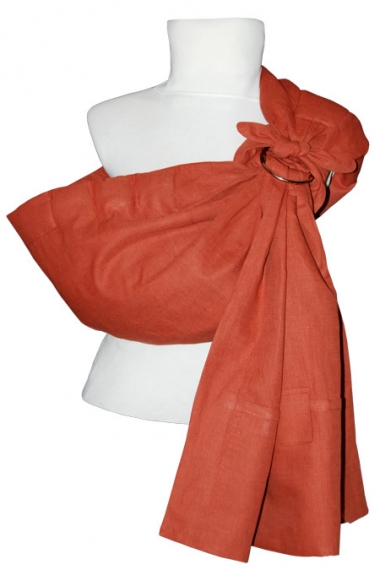 В данной модели по низу полотна слинга имеется три нашивных кармана на липучках, средний из который с клапаном. Внешняя ткань - специально умягченный лен, внутренняя ткань - однотонный ситец или бязь. Они не жаркие летом и удобные в плохую погоду. В таком слинге Вы будете себя чувствовать комфортно целый год и дома и на улице, если оденете ребенка по погоде. По плотности - чуть плотнее хлопка.