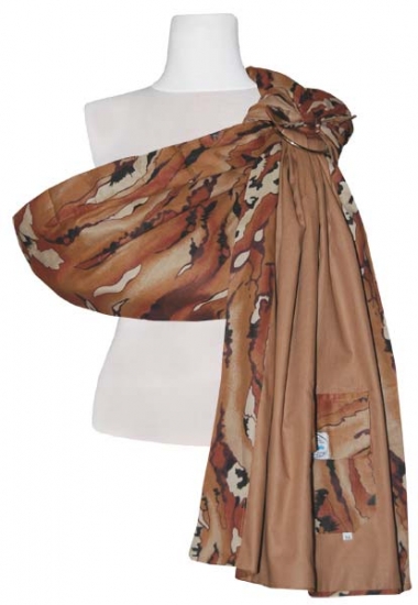 Внешняя ткань - плательная бязь, внутренняя ткань - однотонная бязь. Слинги из бязи самые универсальные. В таком слинге Вам будет хорошо и уютно дома, когда Вы убаюкиваете малыша или занимаетесь своими делами. Для улицы - одевайте ребенка соответственно погоде. Хлопок очень хорошо драпируется, почти не мнется, легко регулируется в кольцах. Ткань достаточно плотная, чтобы выдержать даже пятилетнего ребенка.