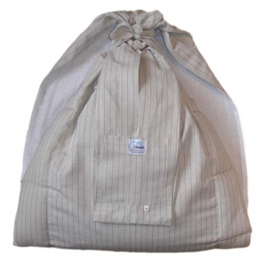 В данной модели конец полотна слинга зашит и образует удобный внутренний карман. Снаружи имеется ещё один нашивной карман. Внешняя ткань - лен 100%, внутренняя ткань - ситец. В таком слинге Вам будет хорошо и уютно дома, когда Вы убаюкиваете малыша или занимаетесь своими делами. Для улицы - одевайте ребенка соответственно погоде. Слинг очень хорошо драпируется, почти не мнется, легко регулируется в колечках. Ткань достаточно плотная, чтобы выдержать даже пятилетнего ребенка.