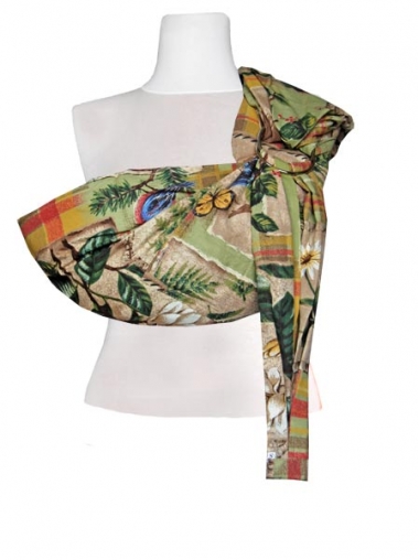 В данной модели лямка зашита в узкий хвост, что позволяет быстро подтягивать слинг. Кольца открыты. Дополнительной регулировки нет, поэтому подбирать нужно строго по размерам, указанным в таблице размеров.