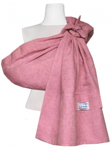 Нежная летняя расцветка. Недорогой слинг с кольцами Розовый (хл.50%, лен 50%) от производителя Баюшка. Особенности модели: однослойный, мягкие бортики, подушка на плечо и под кольца.