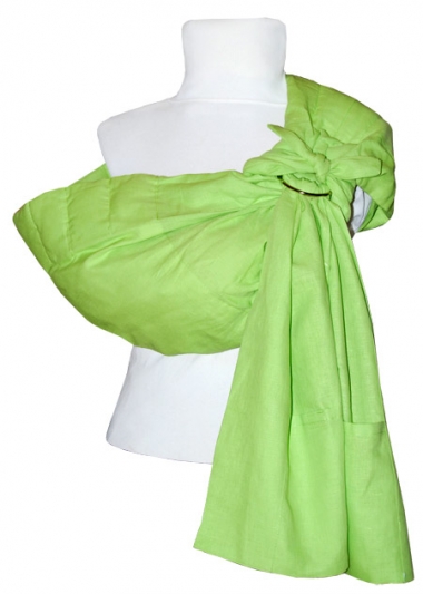 Недорогой слинг с кольцами Салатовый (лен 100%) от производителя Баюшка. Особенности модели: двухслойный, мягкие бортики, 3 кармана, подушка на плечо и под кольца.
