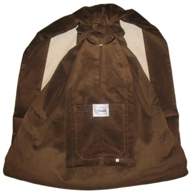 В данной модели конец полотна слинга зашит и образует внутренний карман. Снаружи имеется ещё один нашивной карман. Внешняя ткань - джинс (100% хлопок). Внутренняя ткань - однотонный ситец. Такой слинг хорошо иметь как второй слинг для улицы, он больше подходит для ношения в холодное время года или в прохладную погоду или в холодной квартире.