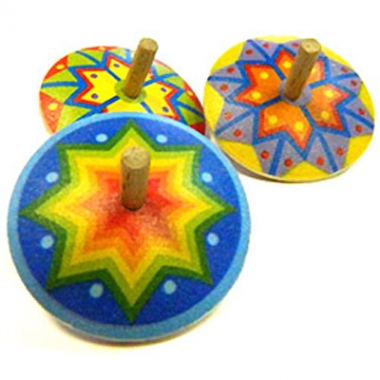 Игра с волчком – это хороший способ усвоения законов смешения цветов, при котором ребенок попутно узнает названия новых оттенков. Наблюдая за их вращением, ребенок видит игру различных цветов и волшебное рождение, например, фиолетового цвета из красного и синего. Для детей постарше, кроме этого, это хорошая тренировка моторики рук.